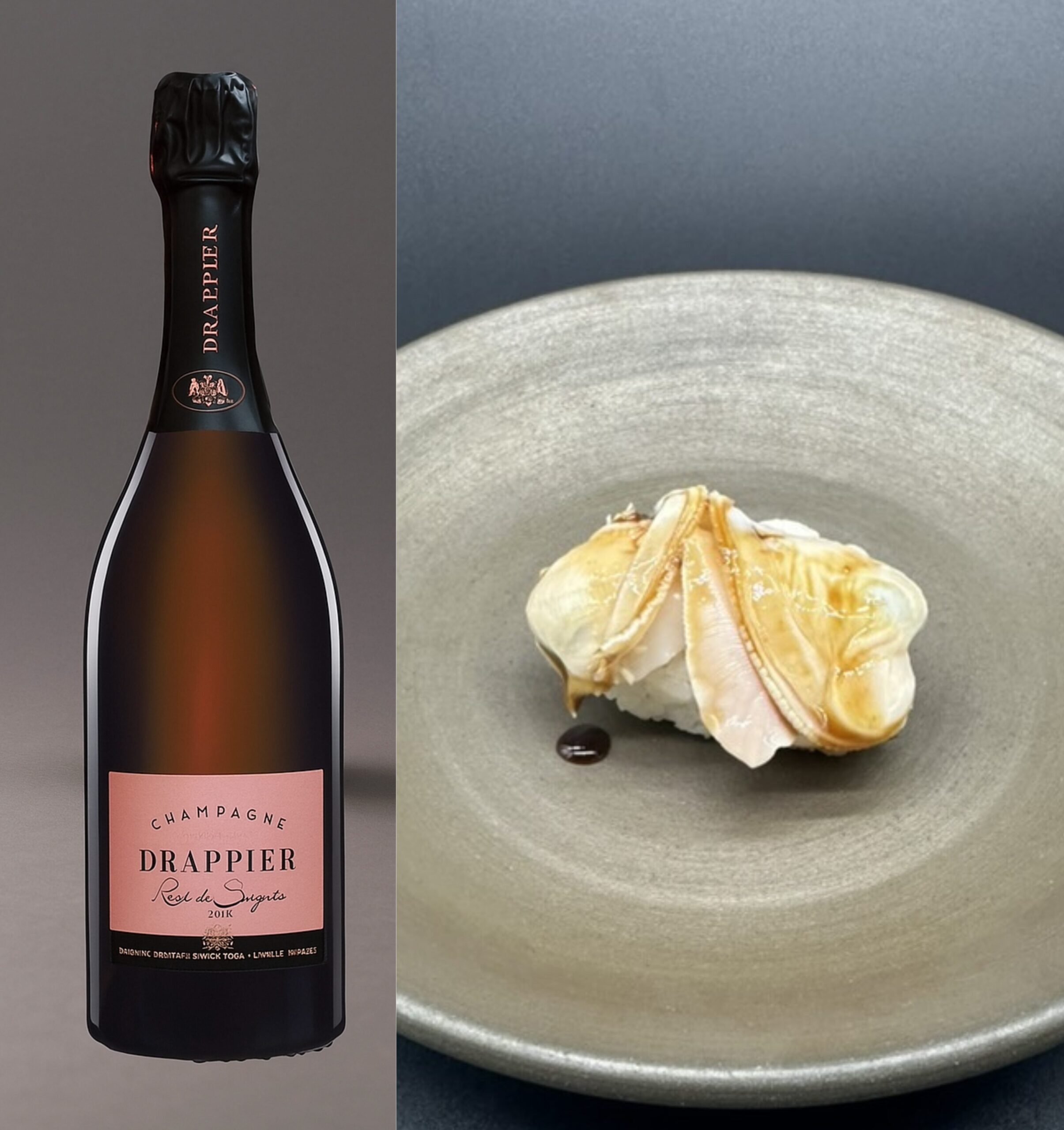 さらに、甘しょっぱい「ツメ」にはシャンパーニュの酸味とほのかなほろ苦さが、口中での調和をもたらし、お互いにない味わいを補完します。