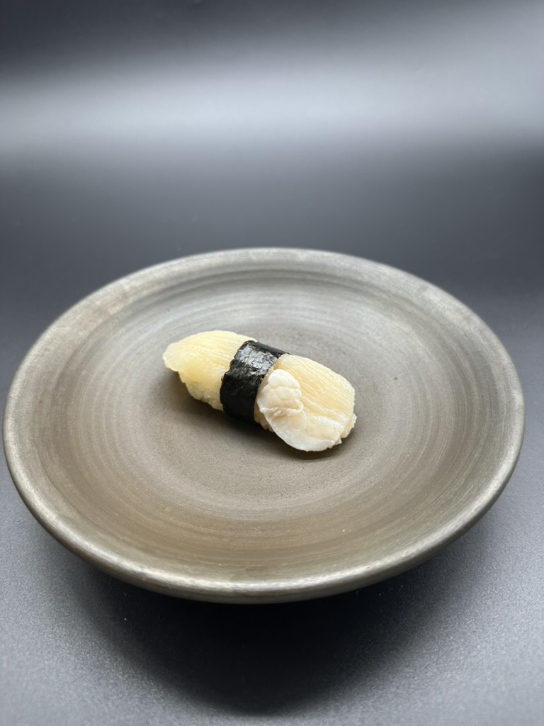 職人が施す手仕事 ① 下処理 殻開け:大型の殻を専用のヘラでこじ開け、柱(貝柱)を丁寧に外す。 内臓処理:黒い外套膜やヒモ部分を除去。食用になるのは柱の部分が中心。 ② 下味・仕立て 生:透明感ある甘味と心地よい歯ごたえをそのまま活かす。 炙り:... -